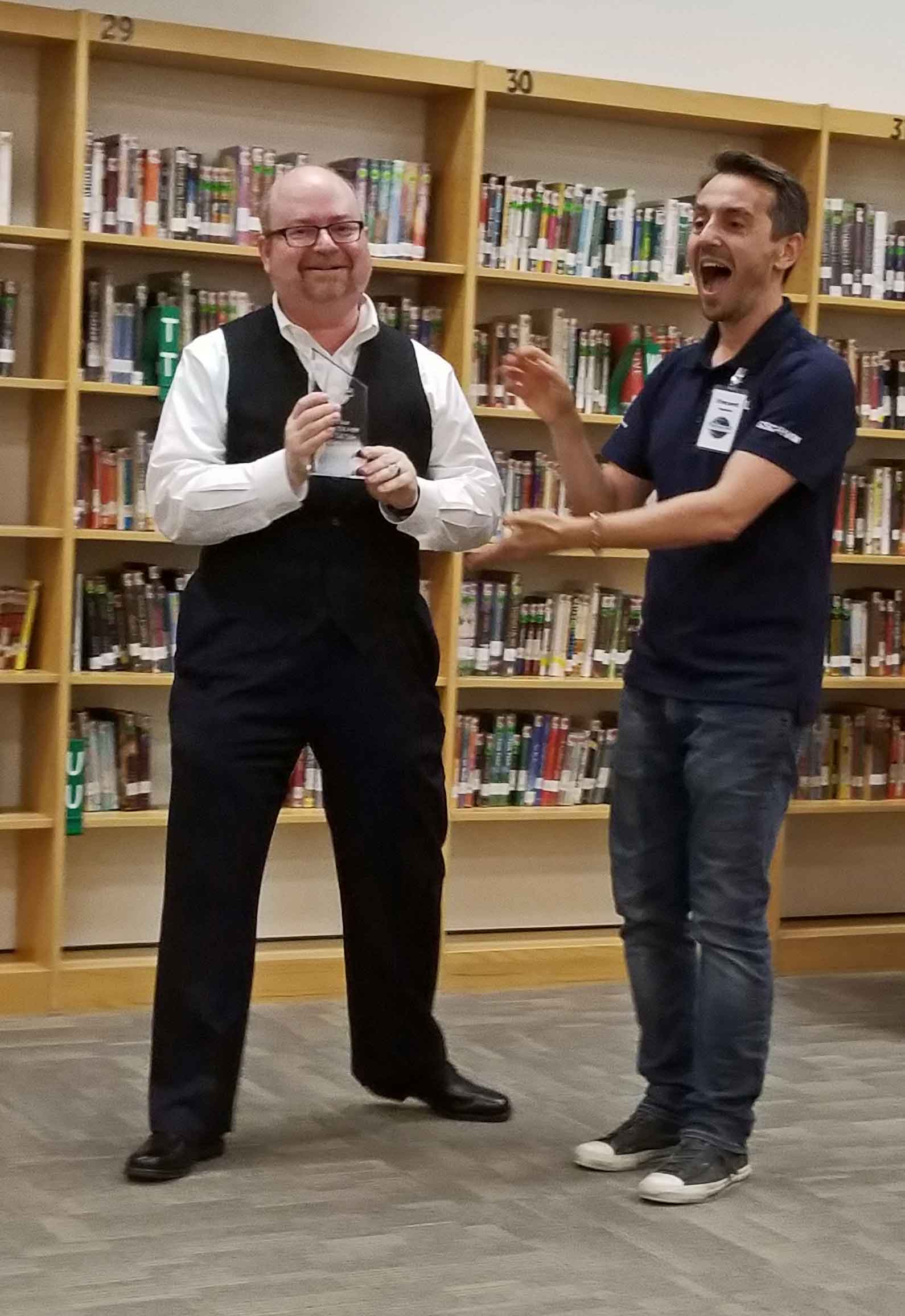 We had a fun time at the Club Tall Tales Contest! Vaughn’s speech was about an icy fishing expedition that went bad. Rosemarie Roesler told a spine-tingling tale of a boy with a coyote face. Megan Stuff told us how she got in trouble for causing problems for The Pope. Matt Patterson gave an unwise ride to a raccoon. Manu Rao told us about how he traveled in time. Kate relayed a story about a most unusual horseride. And Harvey Schroeder showed us The Sloth Dance and told how it came to be.